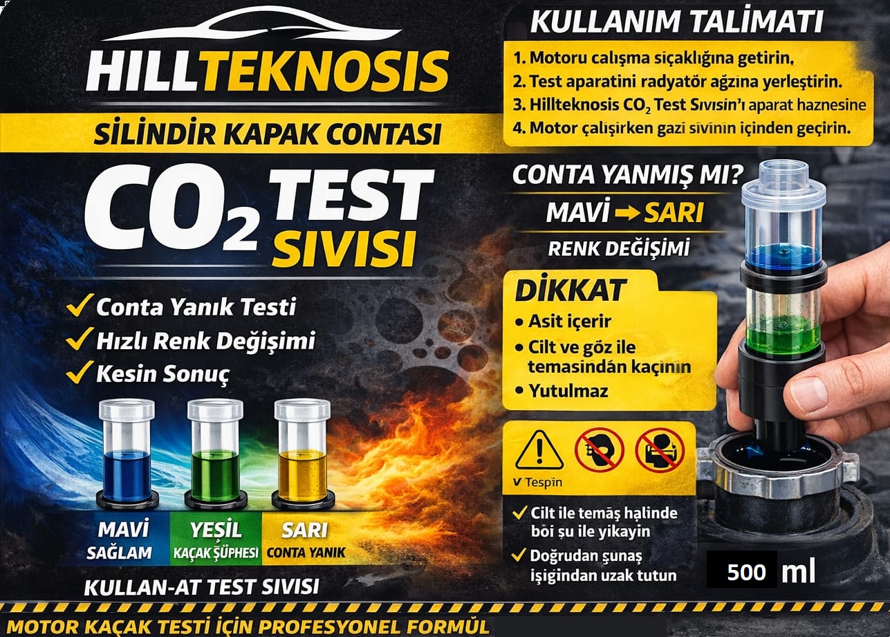 CO2 kaçak test cihazı radyatör veya genleşme haznesinin ağzına yerleştirilir ve emme balonu sıkılarak soğutma sisteminin havası, içindeki CO2 oranı (= yanma gazı) bakımından kontrol edilir. CO2 kaçağı test ekipmanının orta odasındaki mavi sıvının renginin "yeşil" olarak değişmesi ve ardından daha "sarı" bir renk alması yanma odası ve soğutma sistemi arasında bir kaçak olduğunu gösterir. Kaçak test ekipmanı sıcak motorlarda veya soğuk motorların rutin kontrolleri için kullanılabilir. Test sıvısı her kullanımdan sonra değiştirilmelidir.